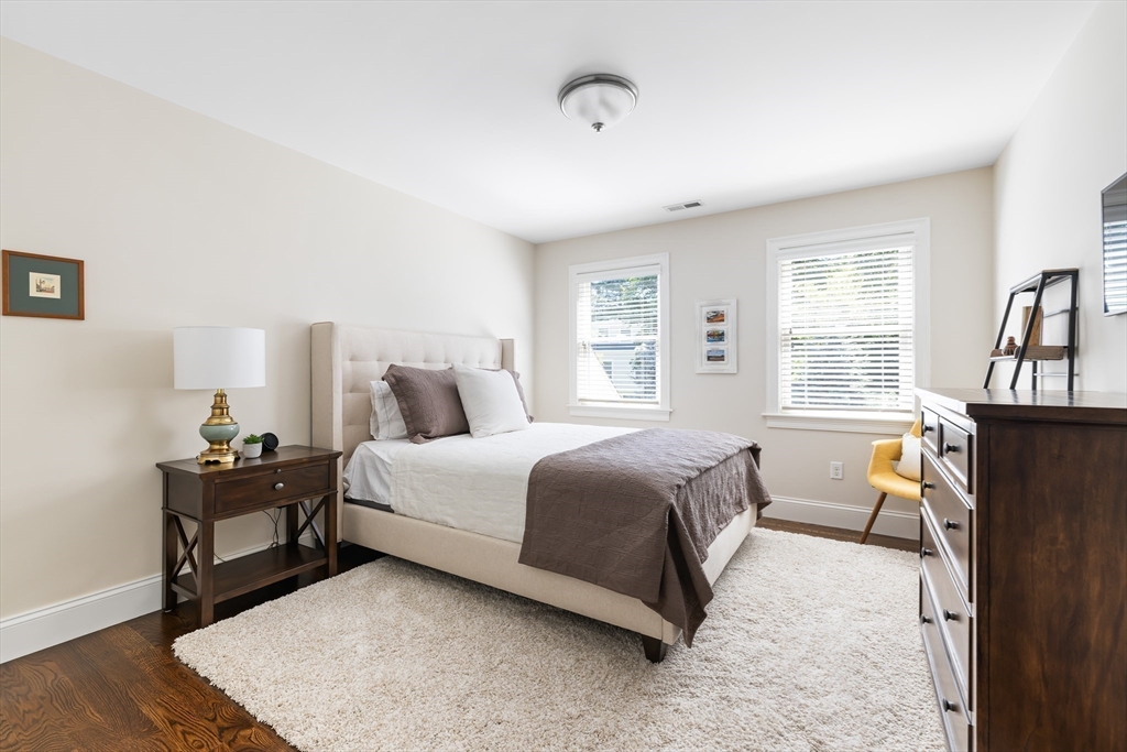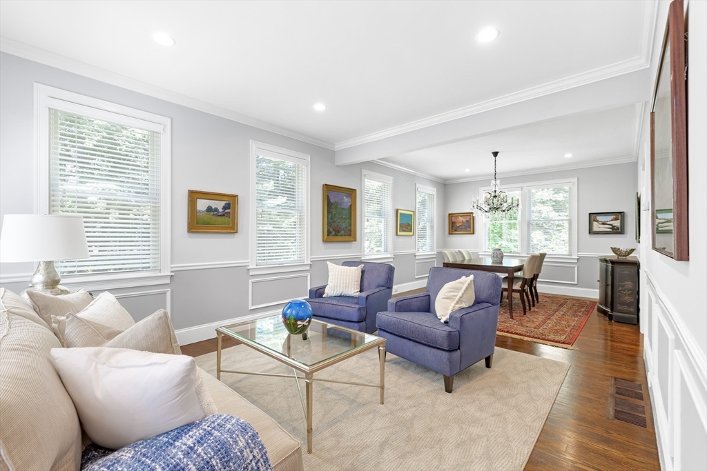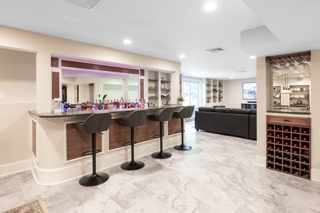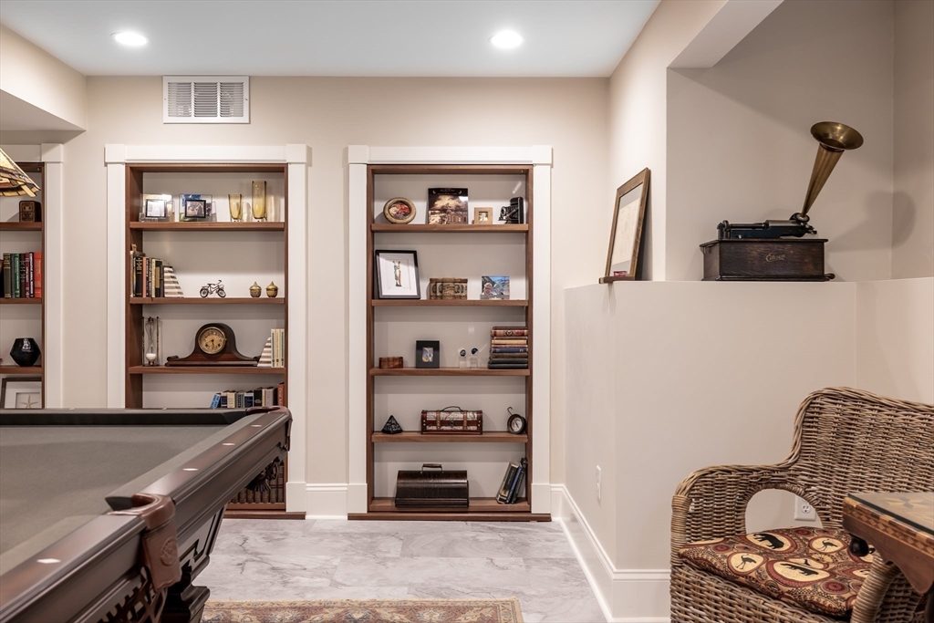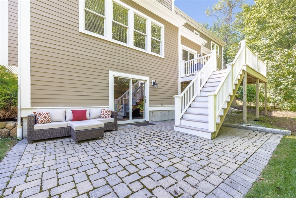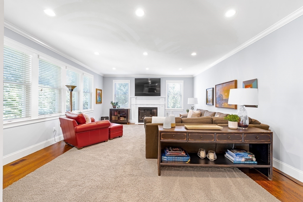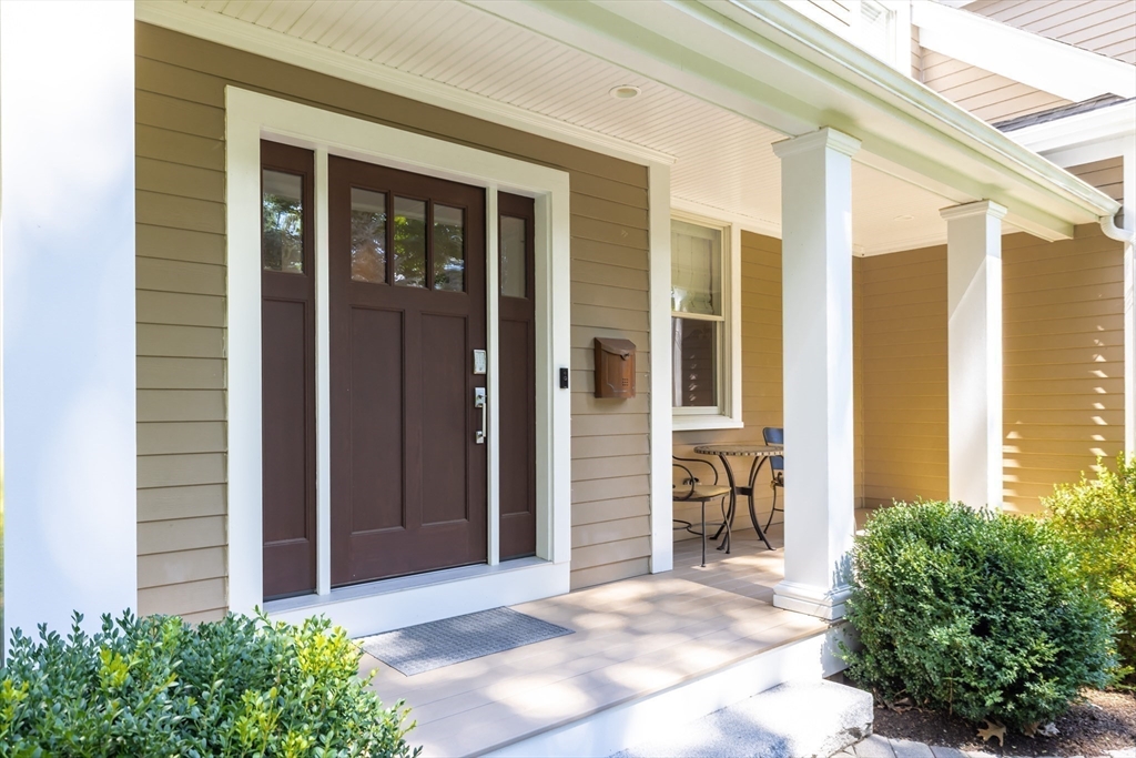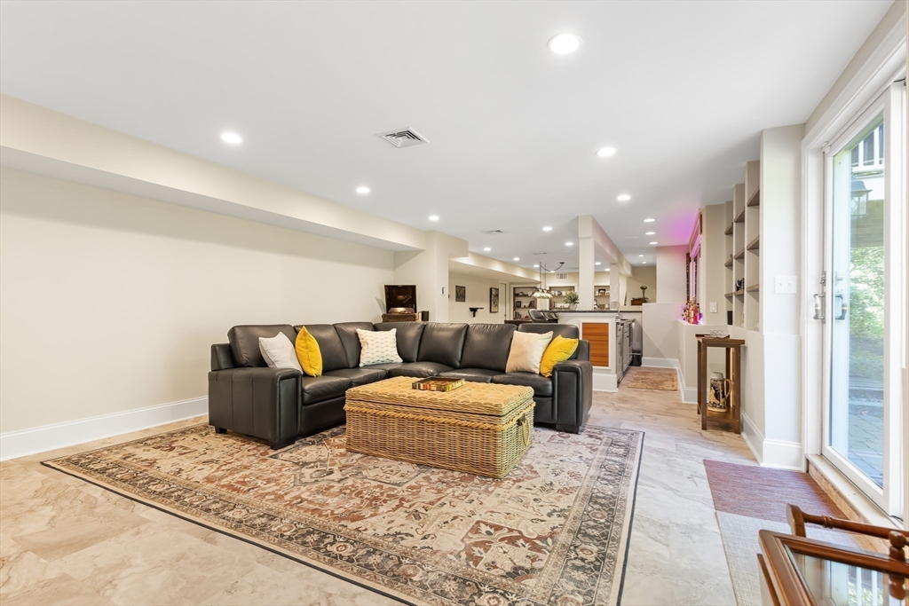 Imagine being 1/2 mile from downtown and feeling like you are in Vermont! This beautiful 9 year young colonial will delight you with its timeless finishes, lovely layout, and its VERY special setting! The home is set back from the street and buffered from the world by the peacefulness of Trout Pond and the surrounding trees. You will love the beautiful chef's kitchen w/ island and sliders to the deck where you'll enjoy scenic views. Kitchen opens to large fireplaced family room. Enjoy formal dining & living rooms for entertaining guests. 1st floor office & 1/2 bath. Second floor offers stunning primary suite w/ multiple closets, 3 windows with nature views, and gorgeous primary bath. 3 bedrooms, family bath & FAB laundry room complete the 2nd floor. Basement is fully finished walk-out with full bath, kitchenette, bar, game room, and secret room! Great place to host the big game or to host guests who stay a while. Smart home has 3 Brilliant control panels, Sonos speakers & Ring system.