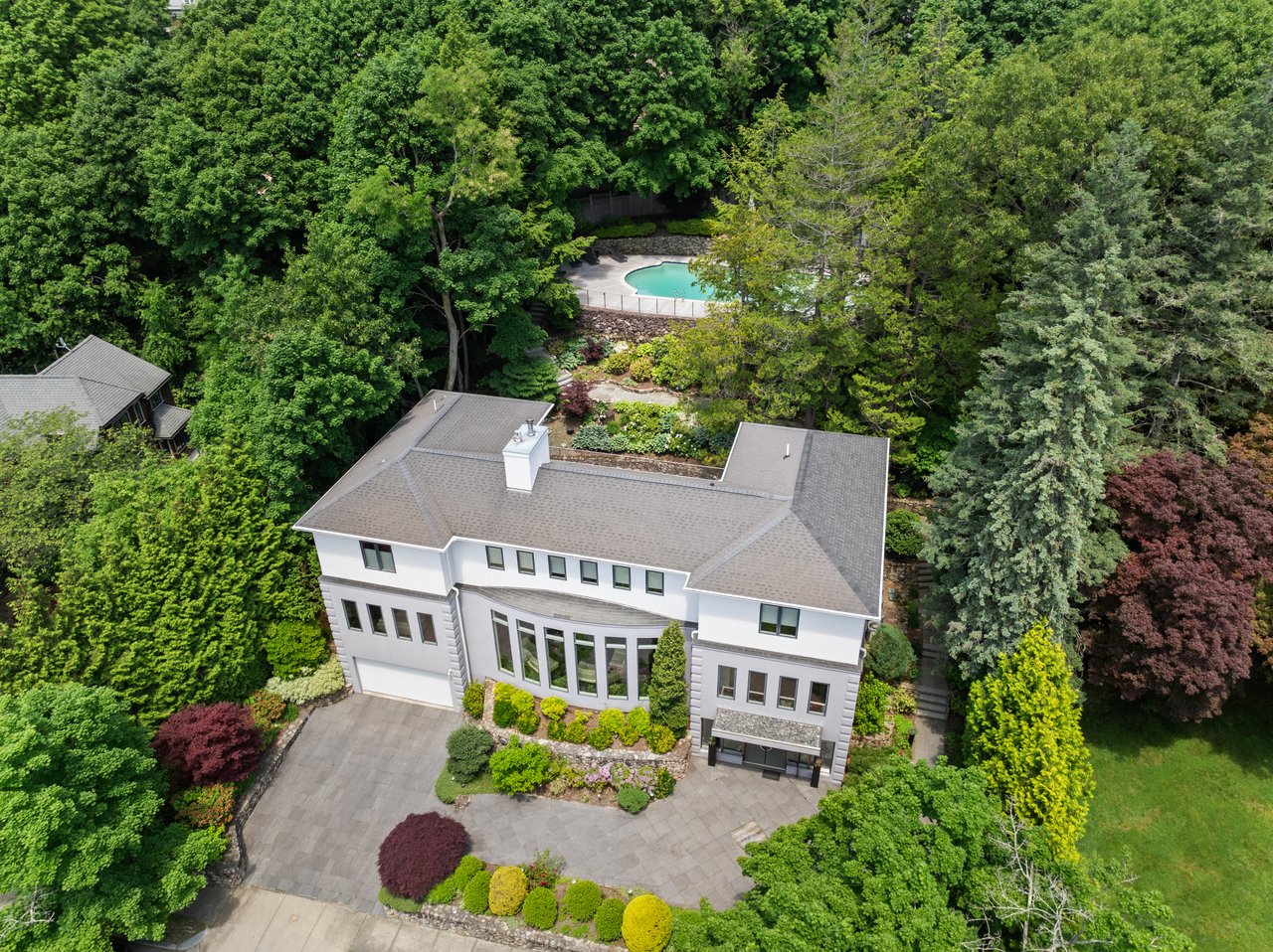 Outside, the property is equally impressive with a resort-style saltwater pool, which is gracefully set back from the home, offering both privacy and serenity. A poolside cabana and blue stone patios complete the outdoor oasis.